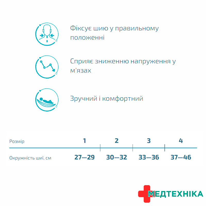 Створюючи каркас навколо шийного відділу хребта, бандаж перебирає на себе навантаження, знімає його з м’язів шиї, знерухомлює й полегшує біль. Дозволяє розслабитися спазмованим м’язам і покращує кровопостачання шиї.