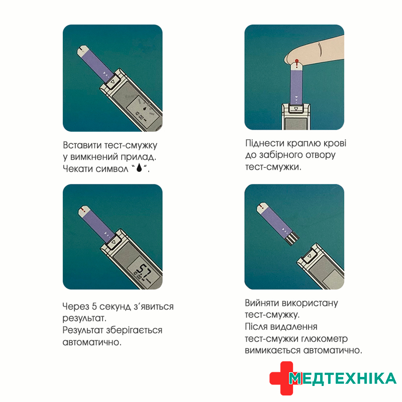 - Просте управління глюкометром за допомогою однієї кнопки;