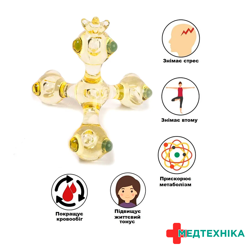 - Високоефективний масаж — найбільш інтенсивний, служить для глибокої обробки м’язів, зв’язок. Проводиться найгострішими конусовидними виступами;