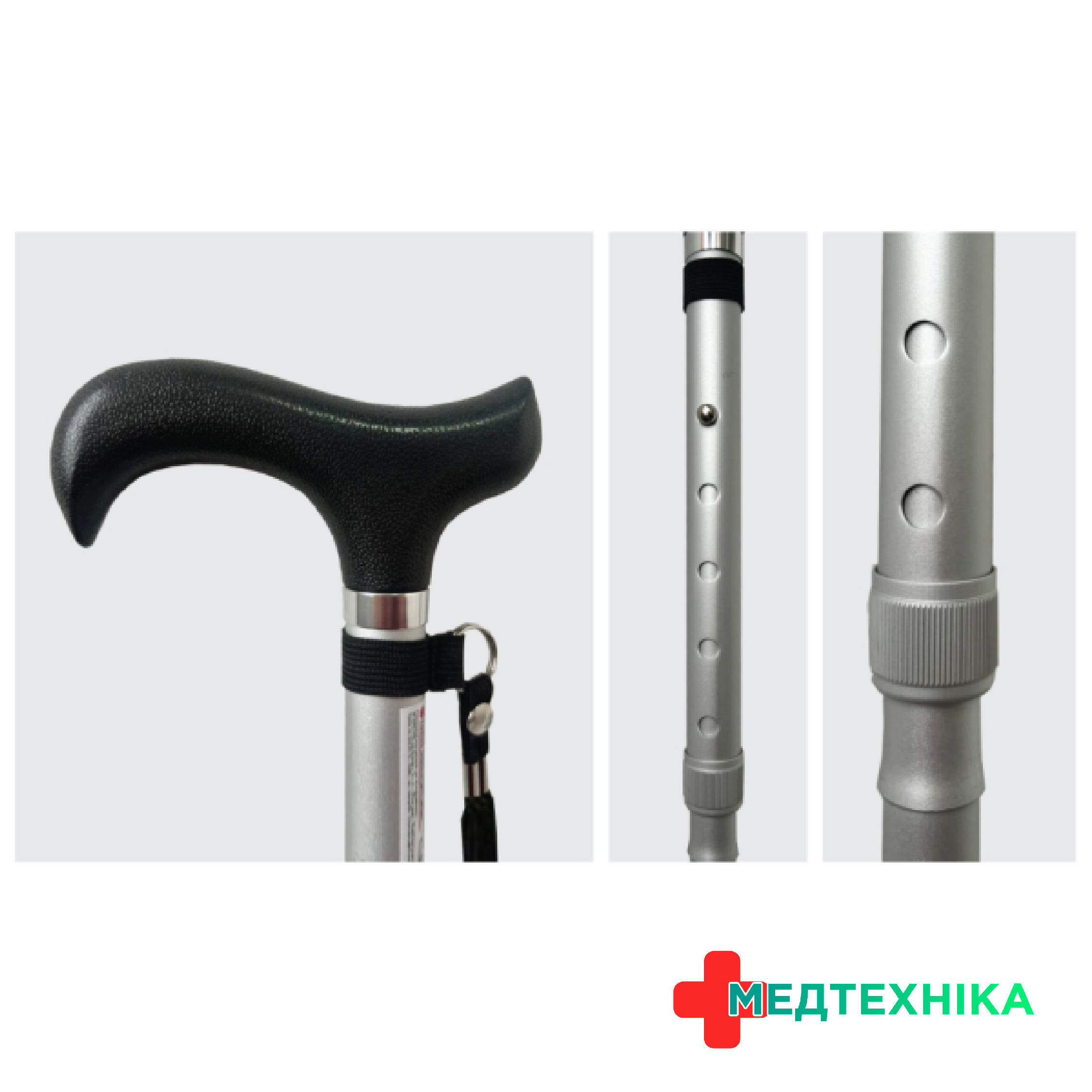 - Гумовий наконечник палиці надає безпечності та стабільності при використанні, запобігаючи ковзанню;